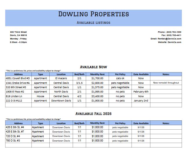 Rental List Rental ListLast updated: December 23rd, 2025 We will add new properties to the Rental List as them become available.
